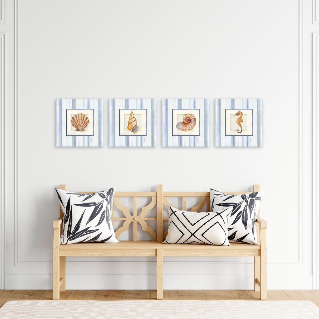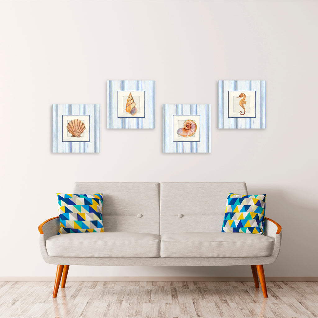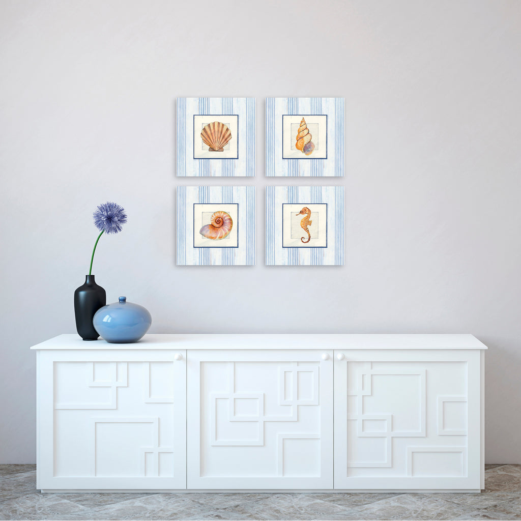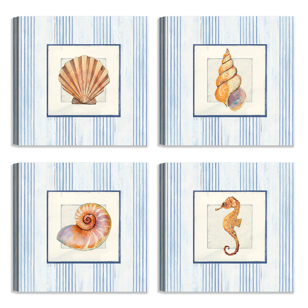 Quadri Stampa su Tela con Telaio in Legno 4 pezzi Stile marino, conchiglie