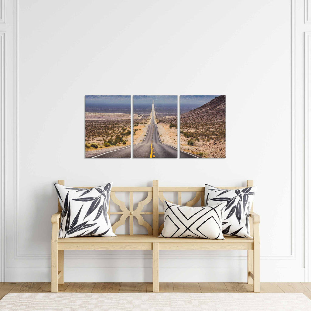 Quadri Stampa su Tela con Telaio in Legno 3 pezzi Route 66 America