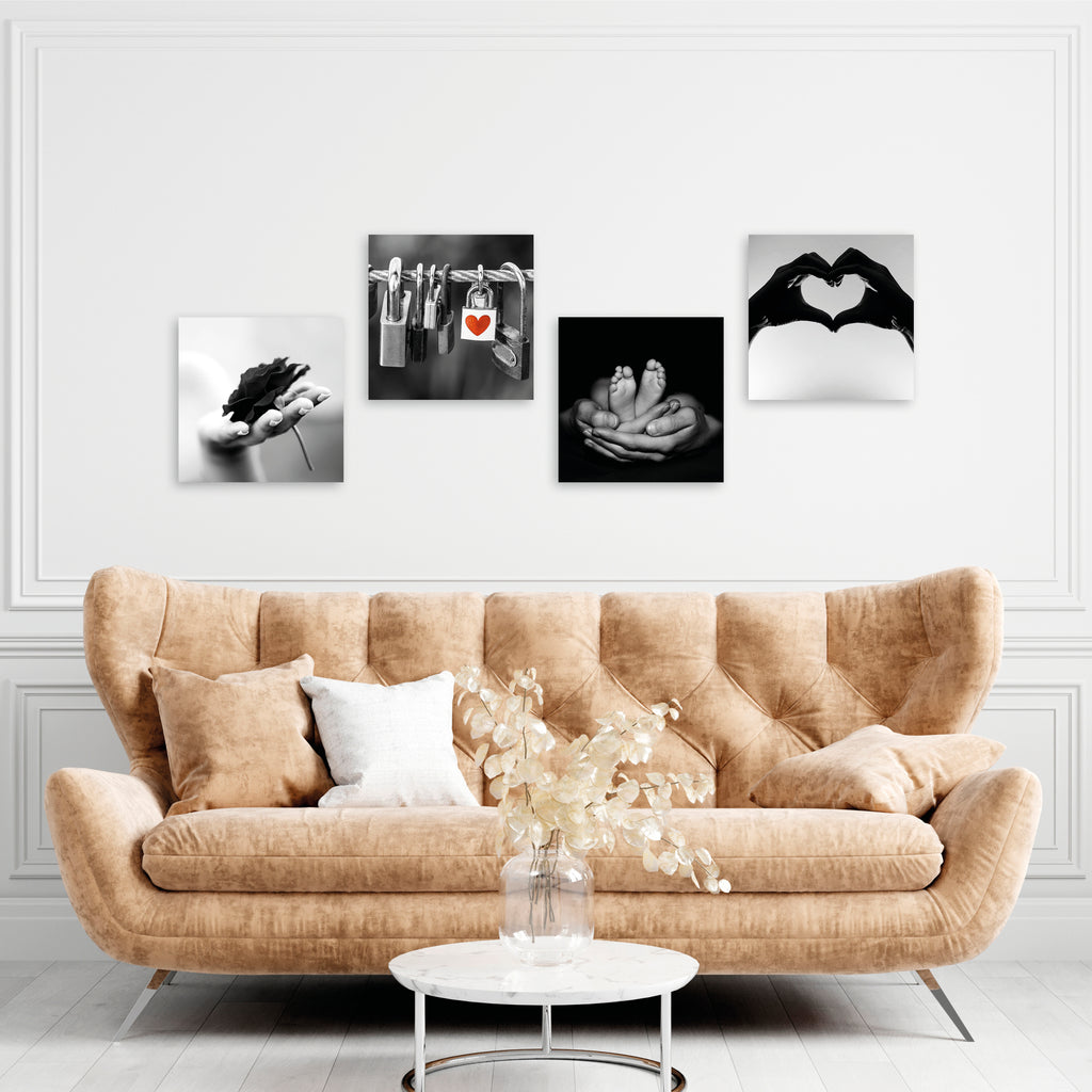 Quadri Stampa su Tela con Telaio in Legno 4 pezzi Tema love in bianco e nero