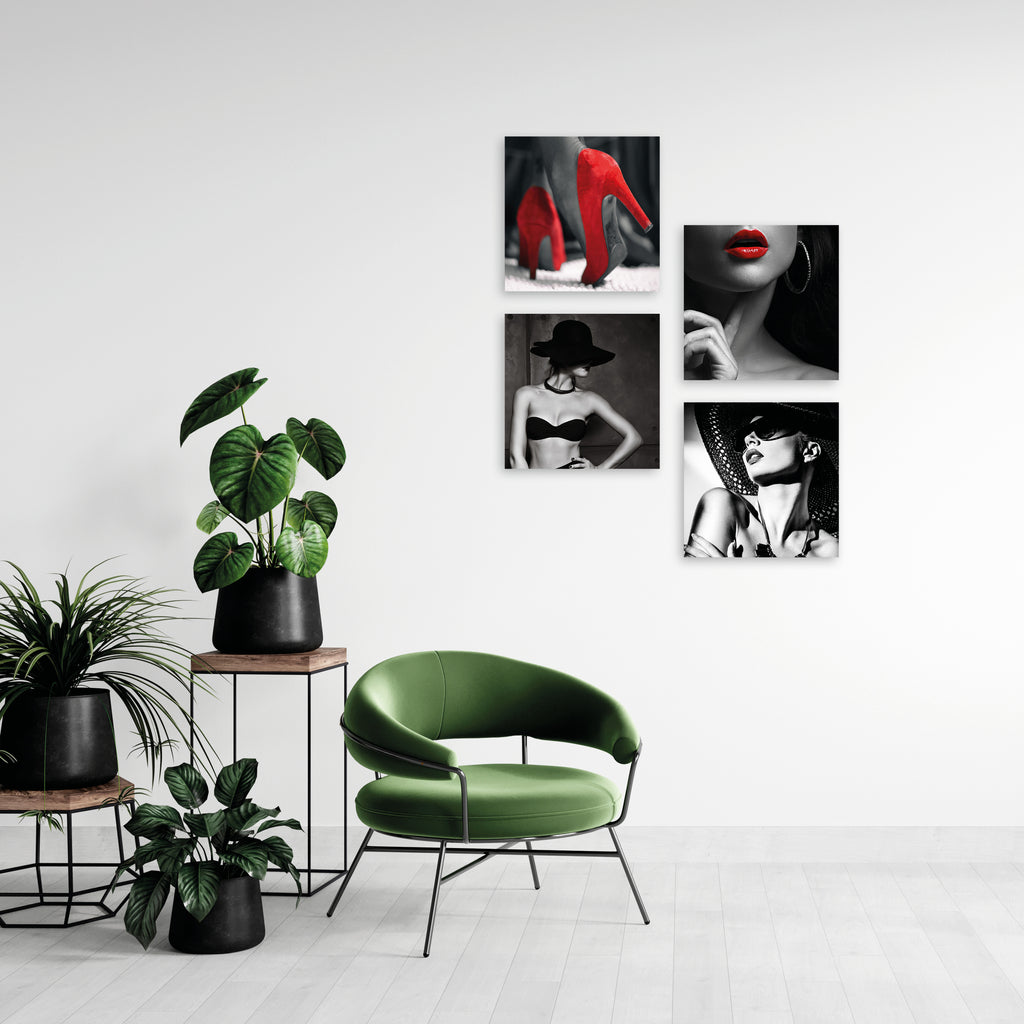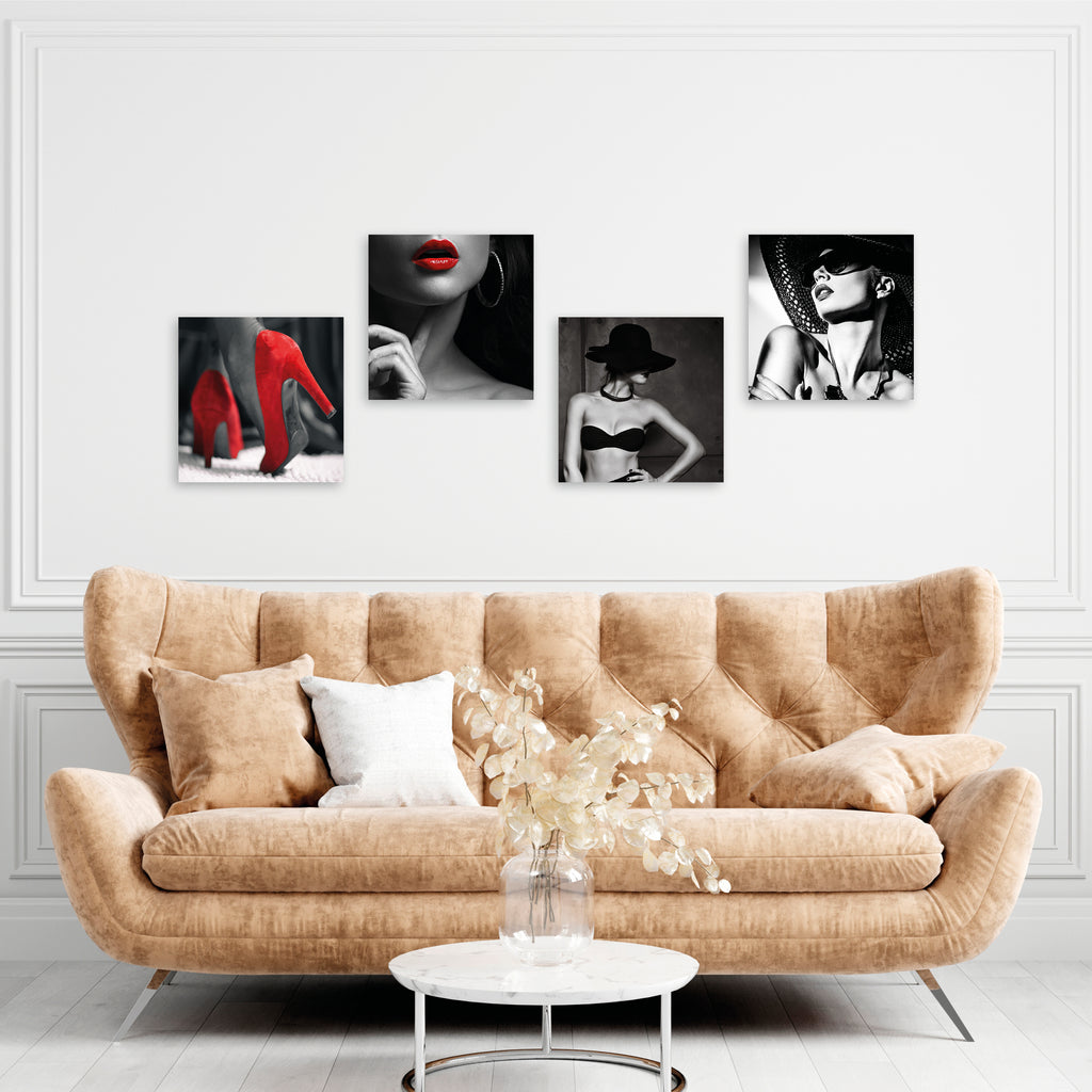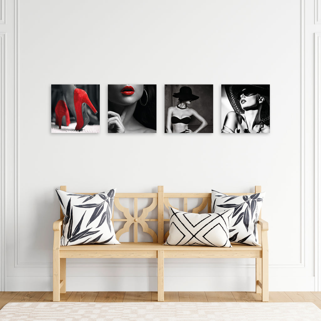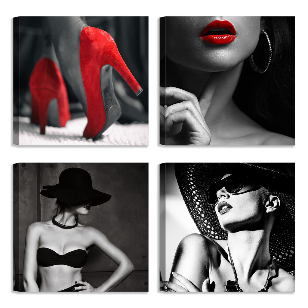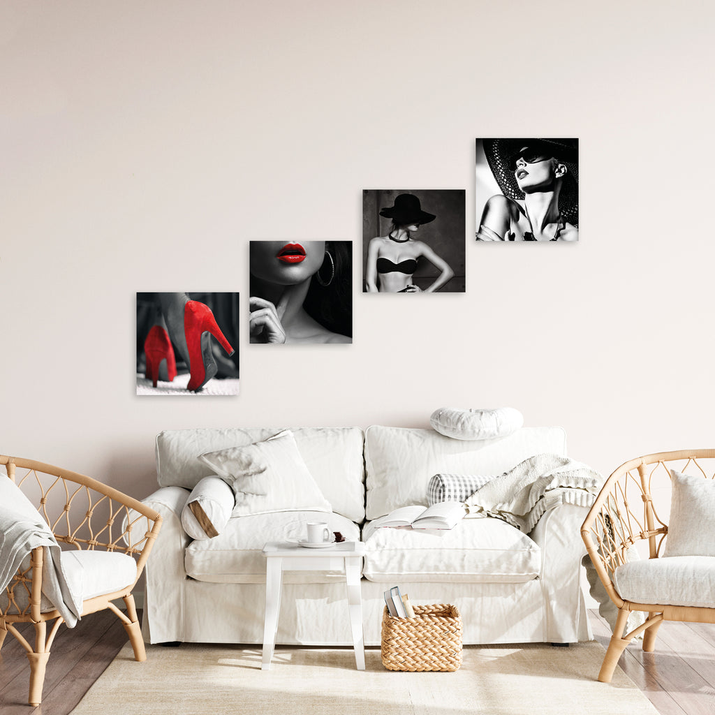 Quadri Stampa su Tela con Telaio in Legno 4 pezzi Donna in bianco e nero
