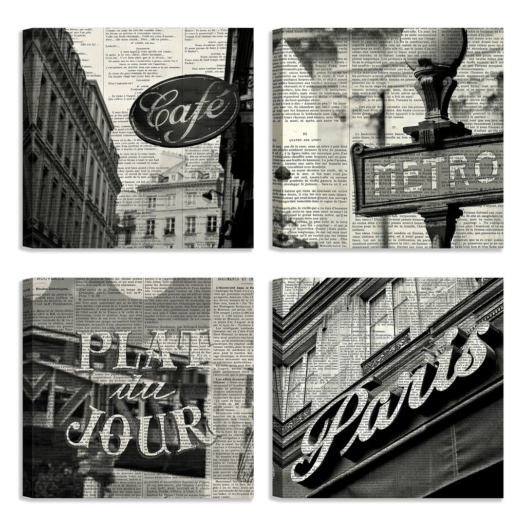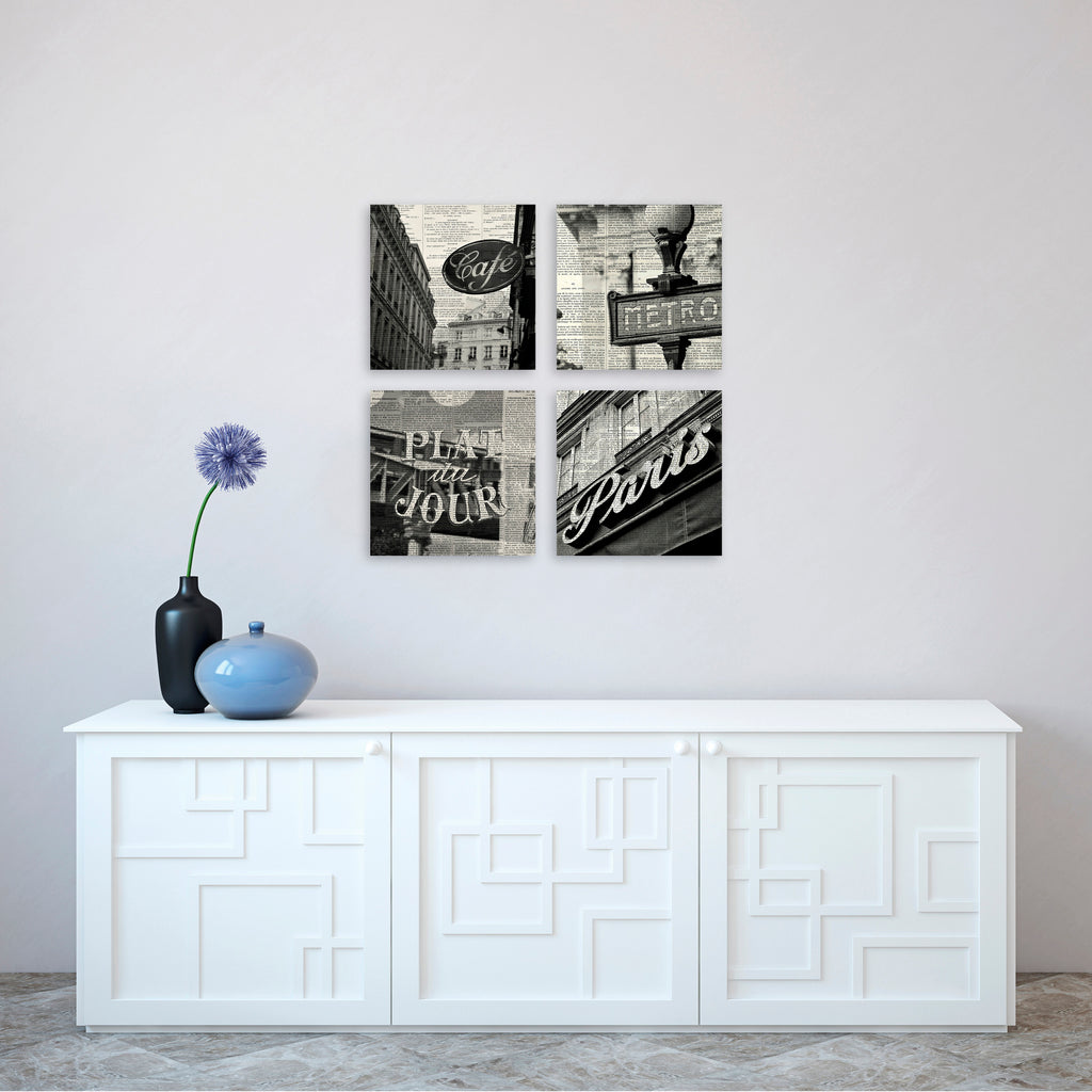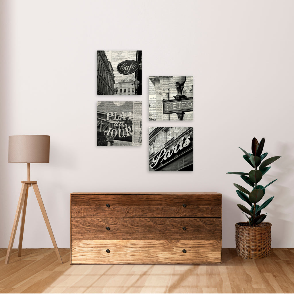 Quadri Stampa su Tela con Telaio in Legno 4 pezzi Parigi in bianco e nero
