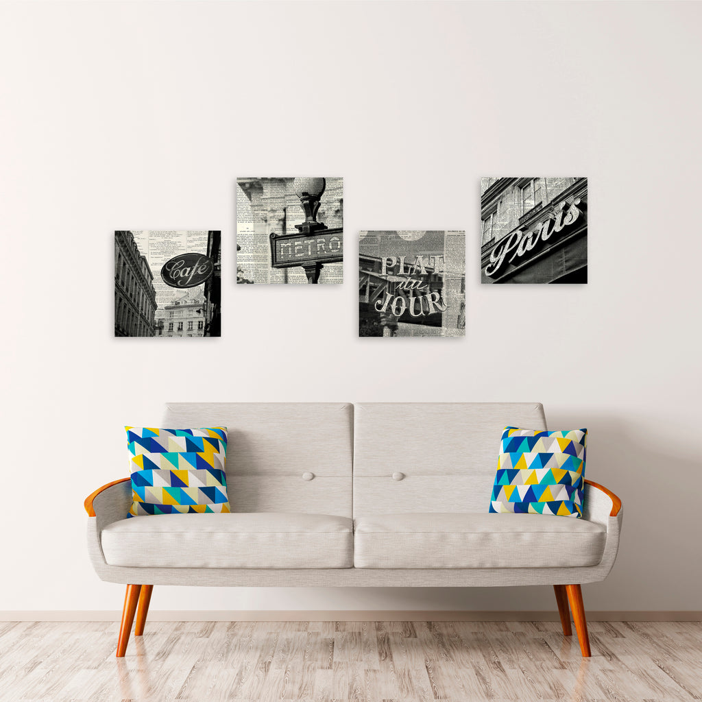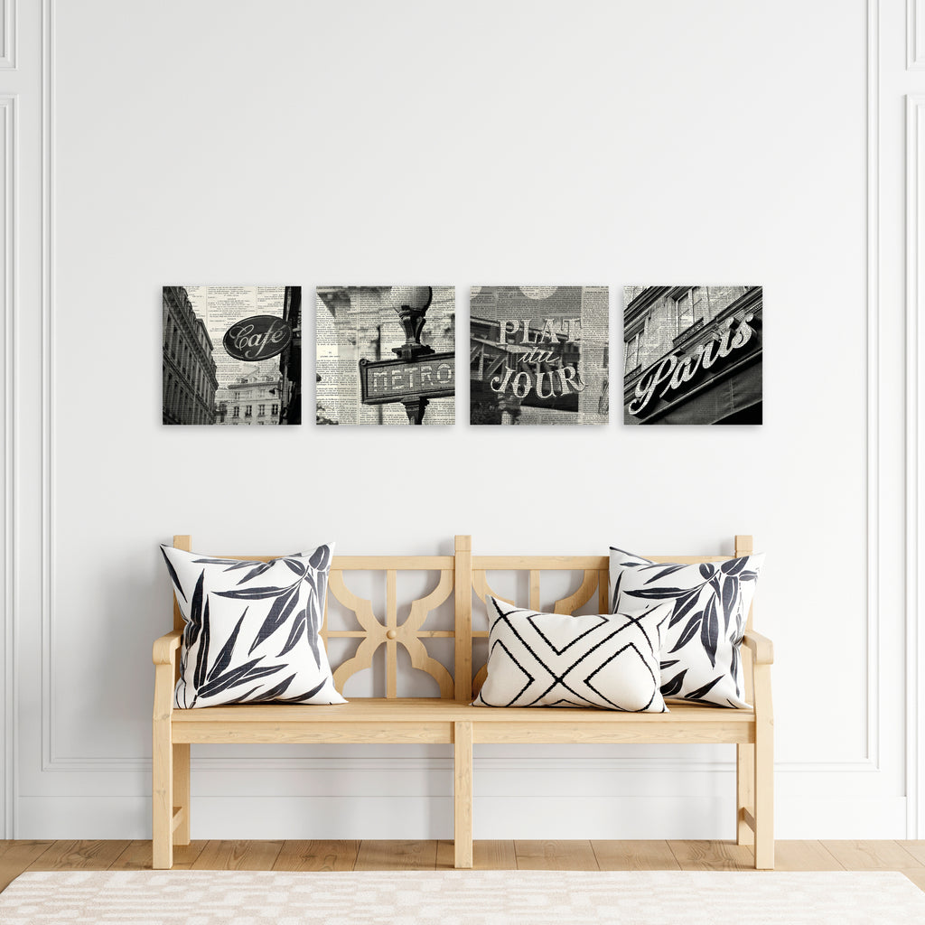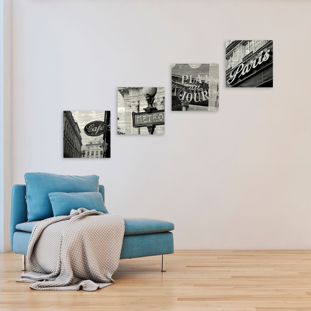 Quadri Stampa su Tela con Telaio in Legno 4 pezzi Parigi in bianco e nero