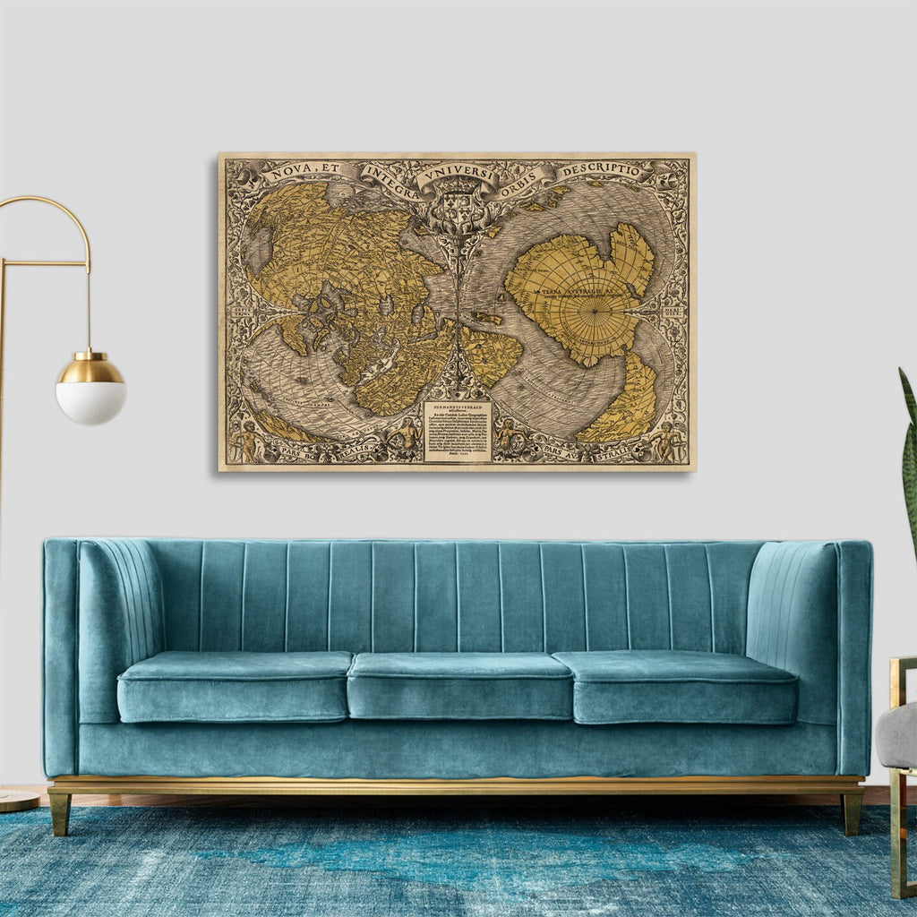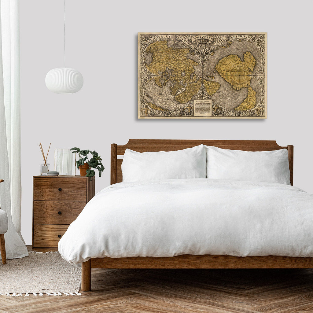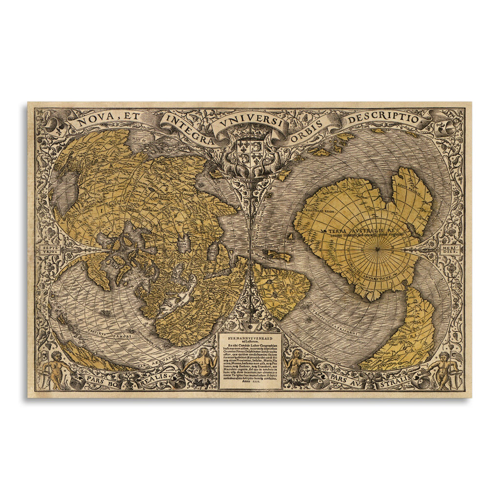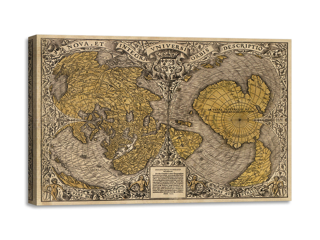 Quadro Stampa su Tela con Telaio in Legno Oronce Finé - Noua, et integra uniuersi orbis descriptio