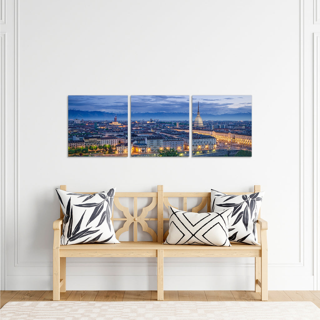 Quadri Stampa su Tela con Telaio in Legno 3 pezzi Panorama Torino