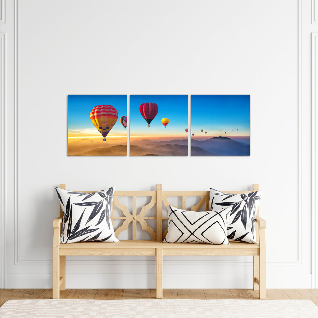 Quadri Stampa su Tela con Telaio in Legno 3 pezzi Mongolfiere con tramonto