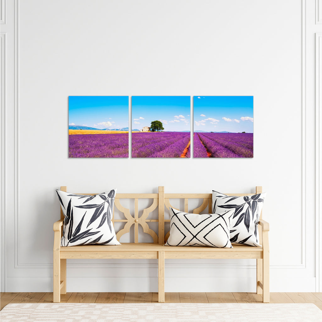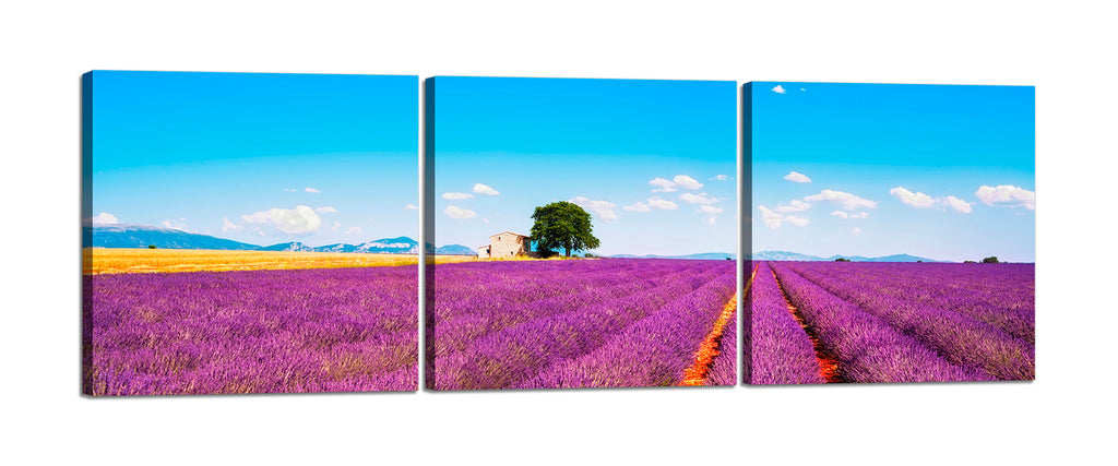Quadri Stampa su Tela con Telaio in Legno 3 pezzi Campo di lavanda