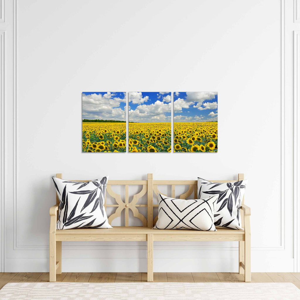 Quadri Stampa su Tela con Telaio in Legno 3 pezzi Campo di girasoli
