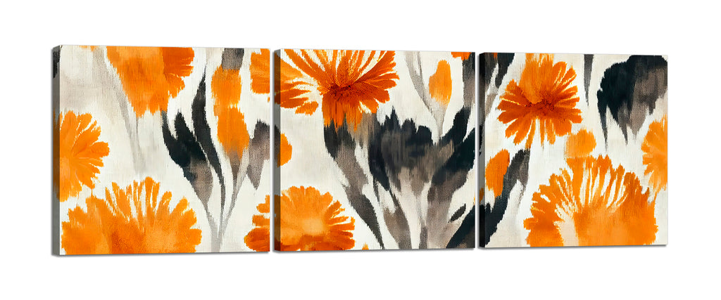 Quadri Stampa su Tela con Telaio in Legno 3 pezzi Fiori astratti colorati