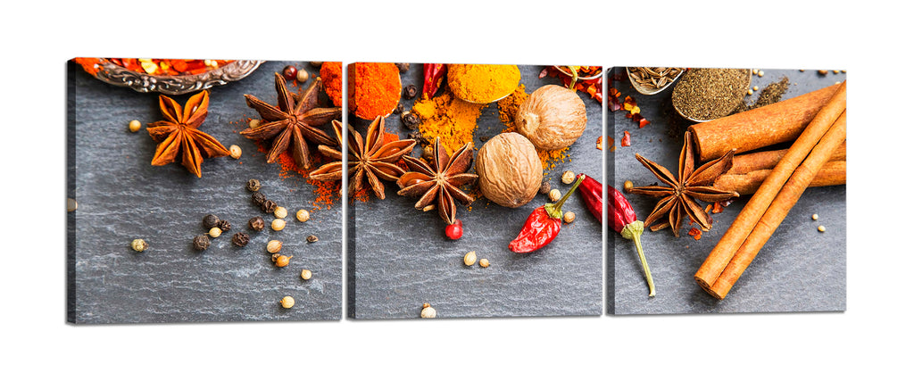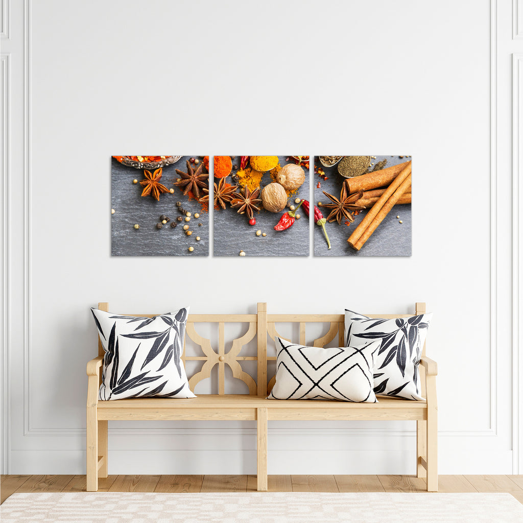 Quadri Stampa su Tela con Telaio in Legno 3 pezzi Spezie colorate