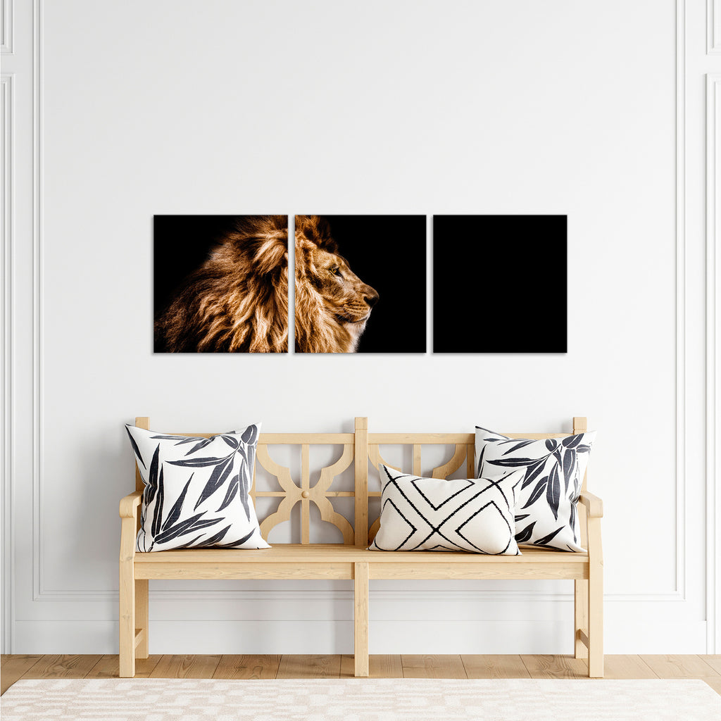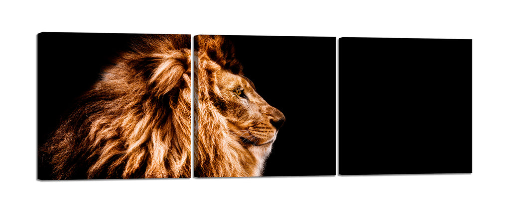 Quadri Stampa su Tela con Telaio in Legno 3 pezzi Leone con sfondo nero