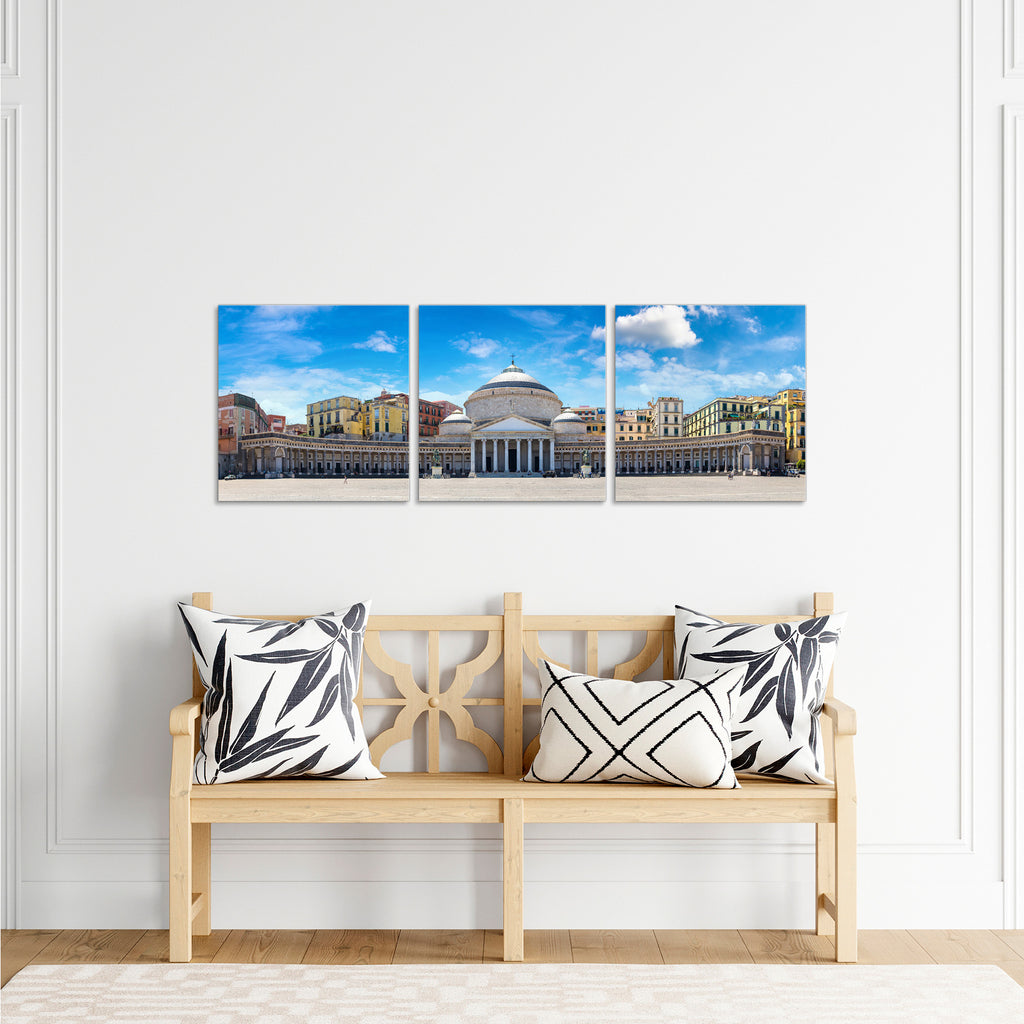 Quadri Stampa su Tela con Telaio in Legno 3 pezzi Napoli Piazza del Plebiscito