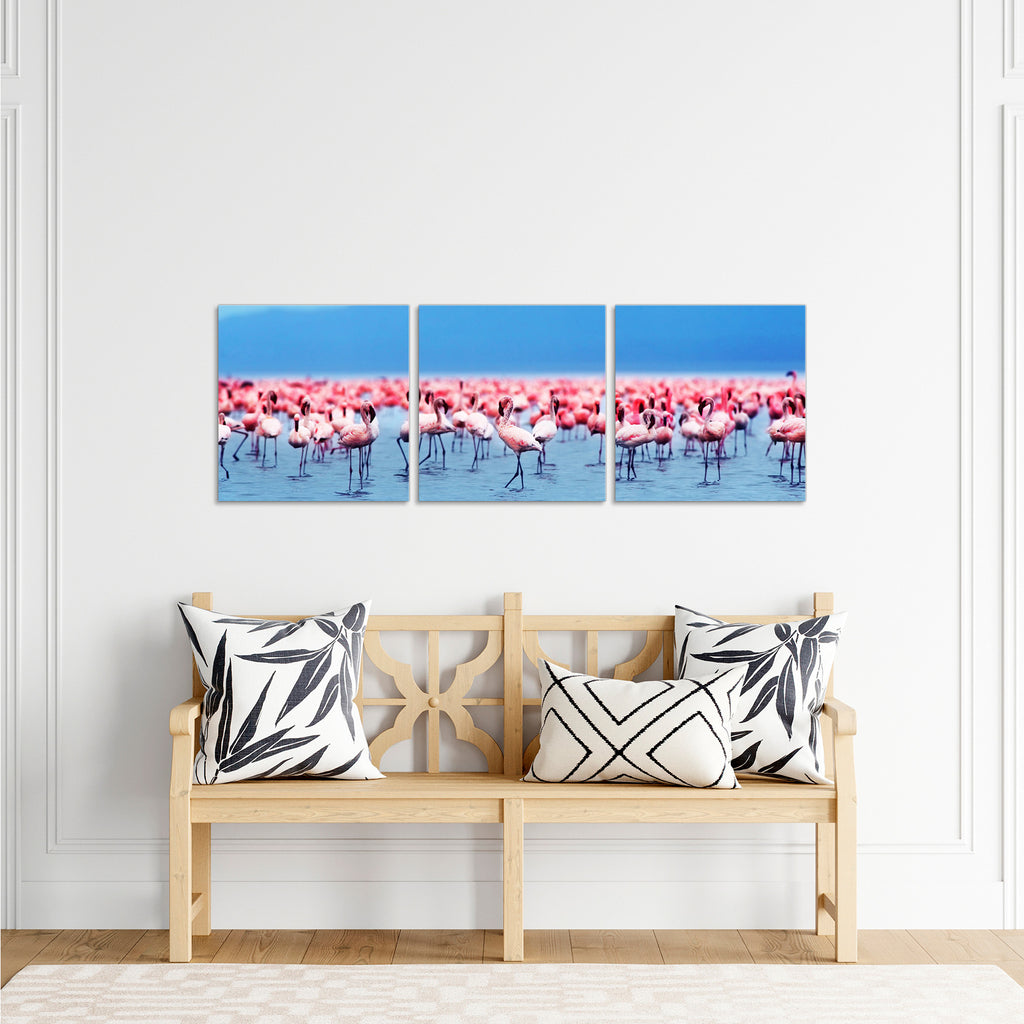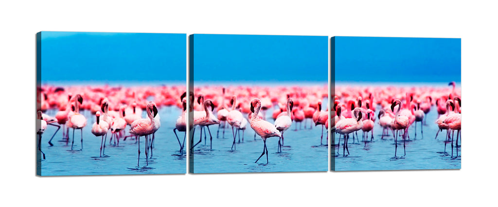 Quadri Stampa su Tela con Telaio in Legno 3 pezzi Fenicotteri rosa
