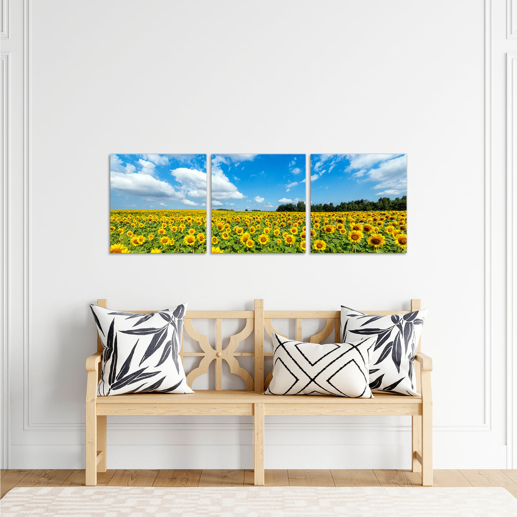 Quadri Stampa su Tela con Telaio in Legno 3 pezzi Campo di girasoli