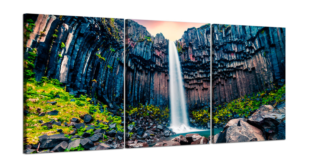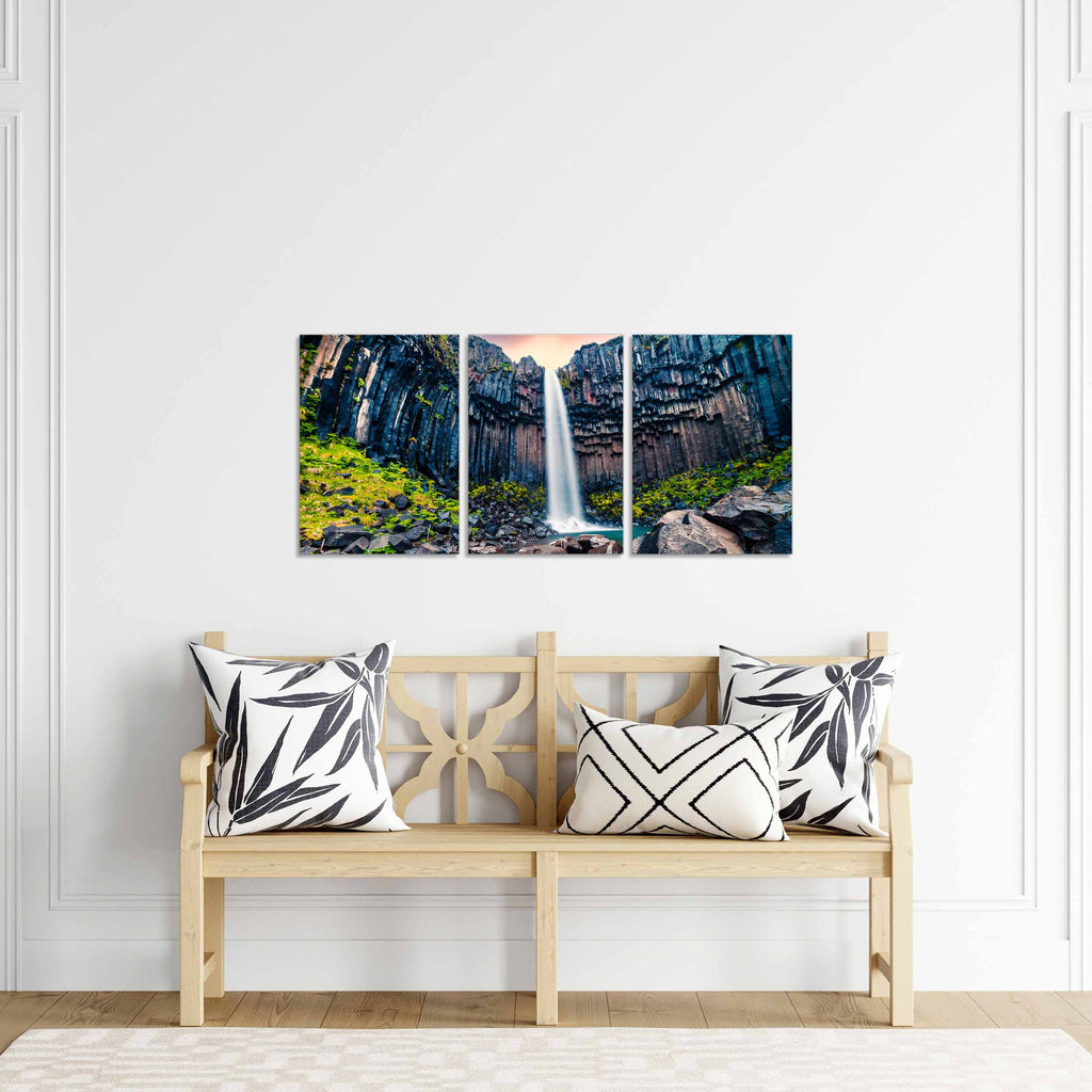 Quadri Stampa su Tela con Telaio in Legno 3 pezzi Cascata naturale