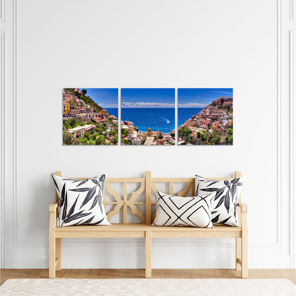 Quadri Stampa su Tela con Telaio in Legno 3 pezzi Panorama Ravello Costiera Amalfitana