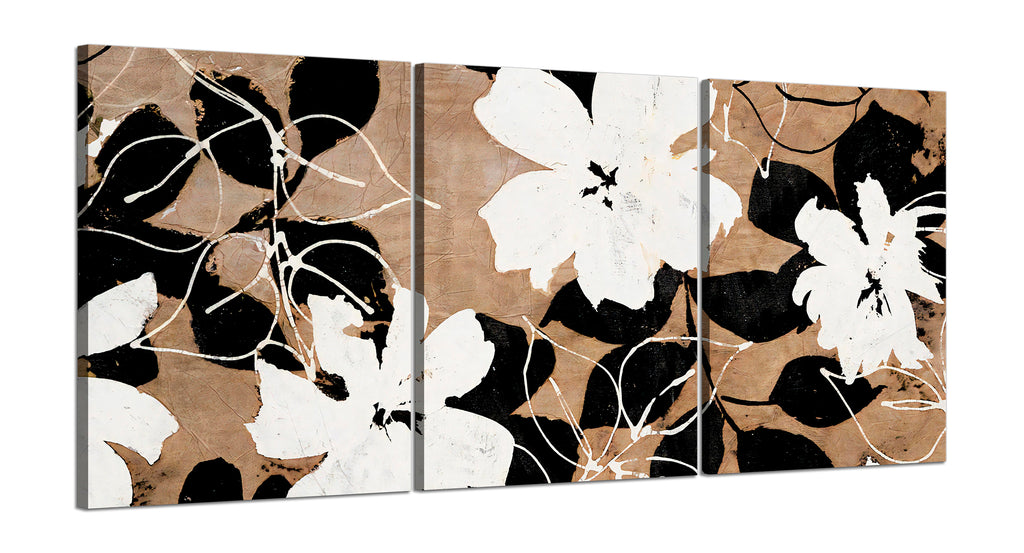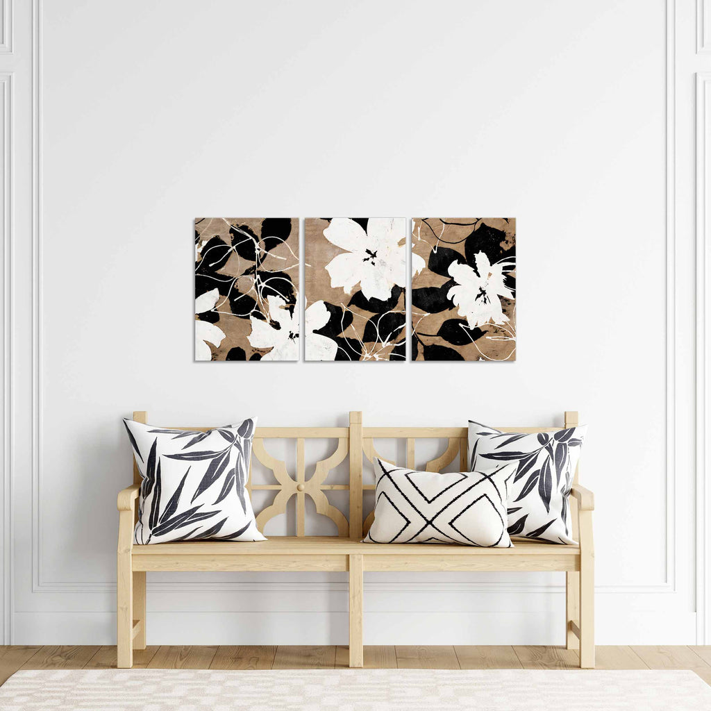 Quadri Stampa su Tela con Telaio in Legno 3 pezzi Fiori astratti