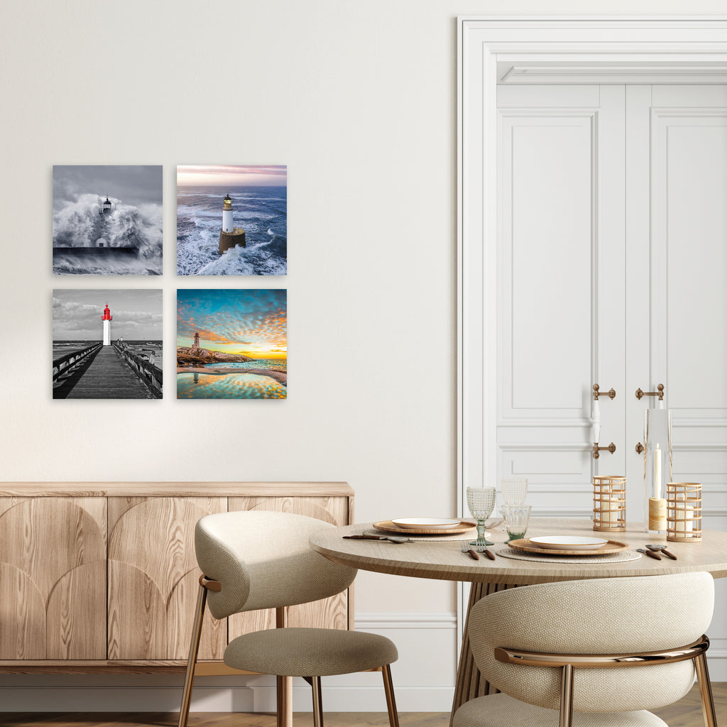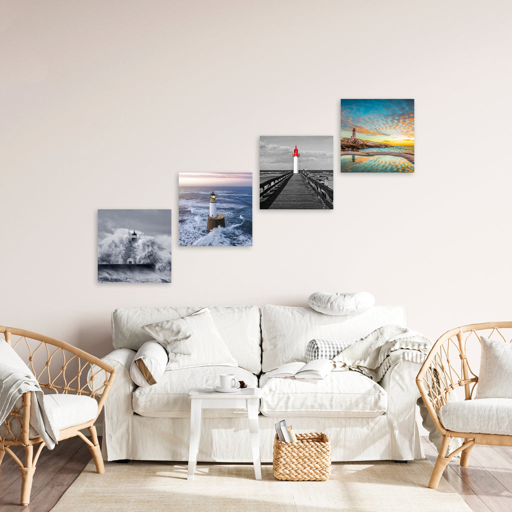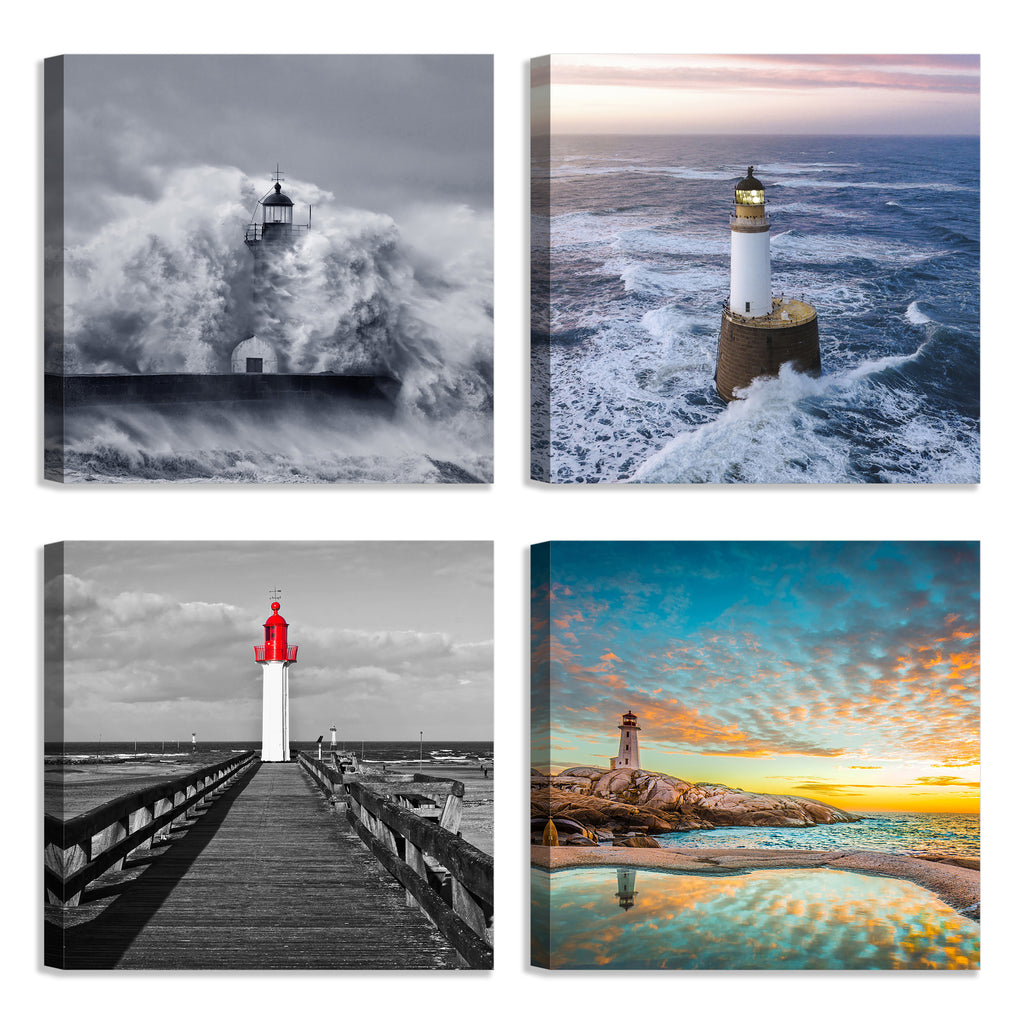 Quadri Stampa su Tela con Telaio in Legno 4 pezzi Fari in mare