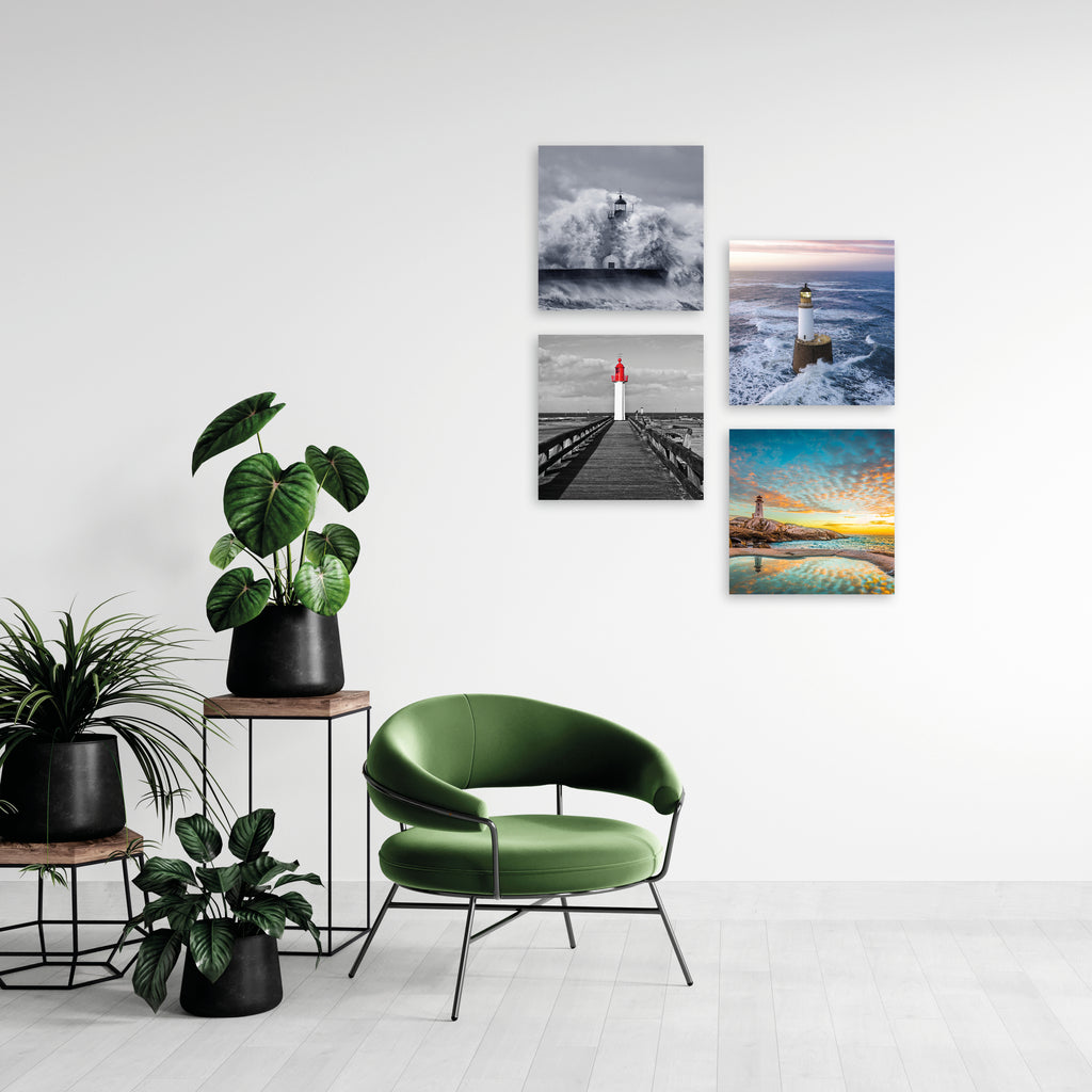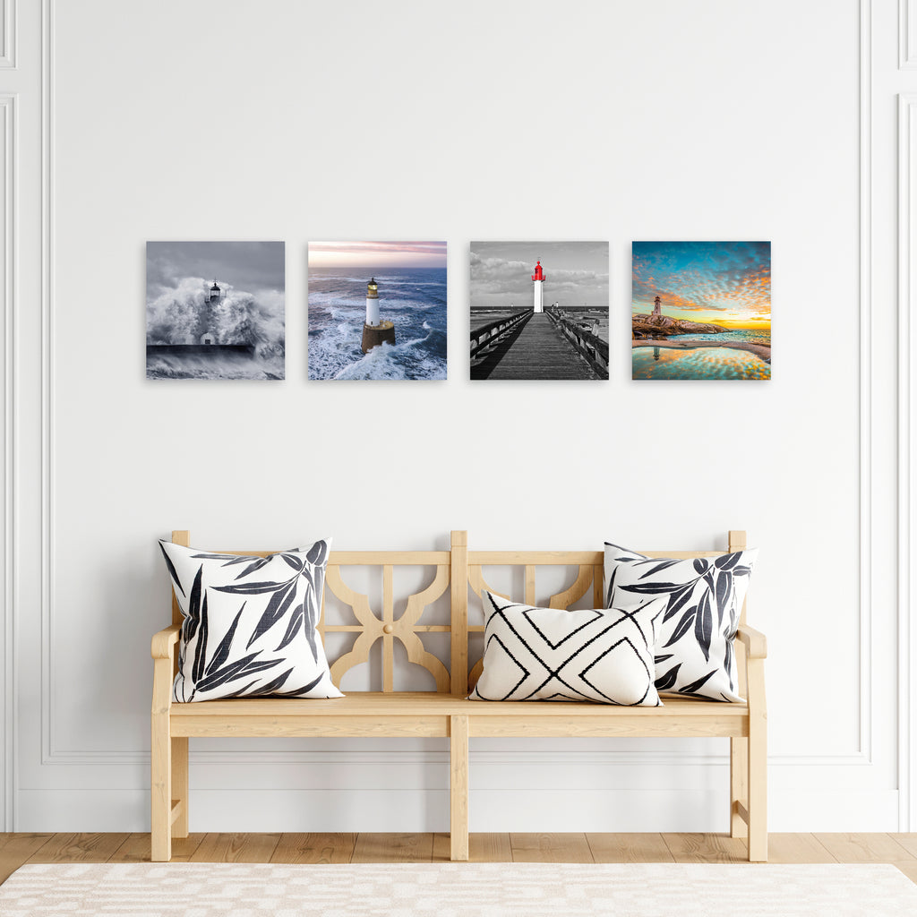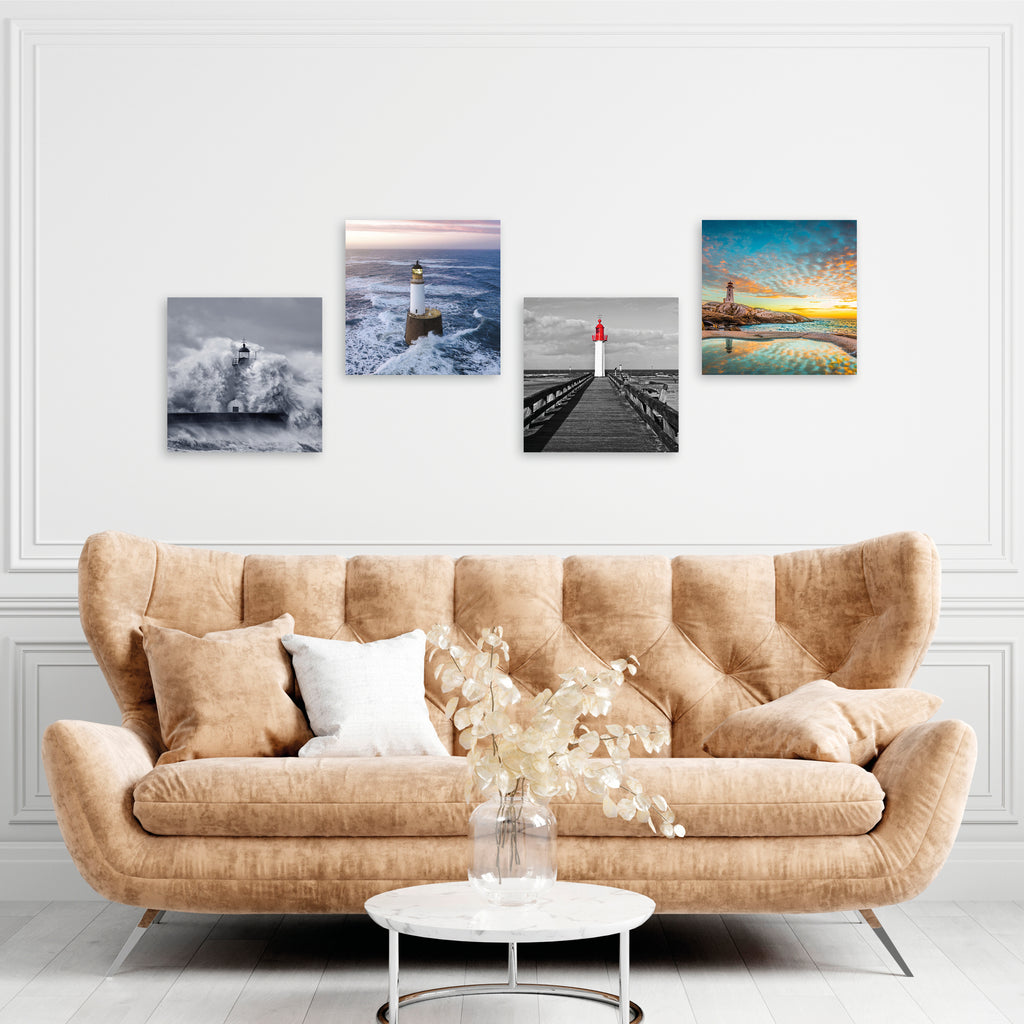 Quadri Stampa su Tela con Telaio in Legno 4 pezzi Fari in mare