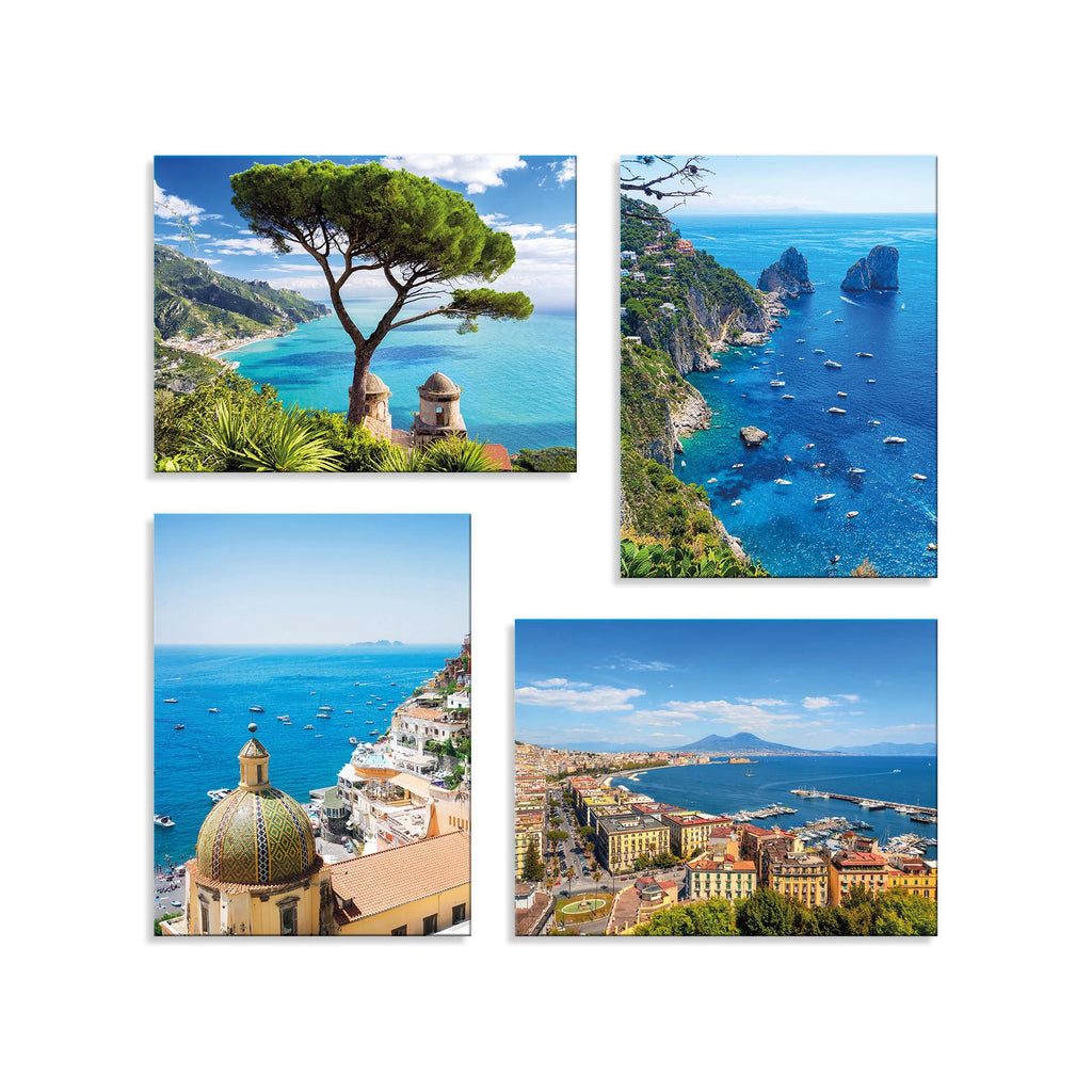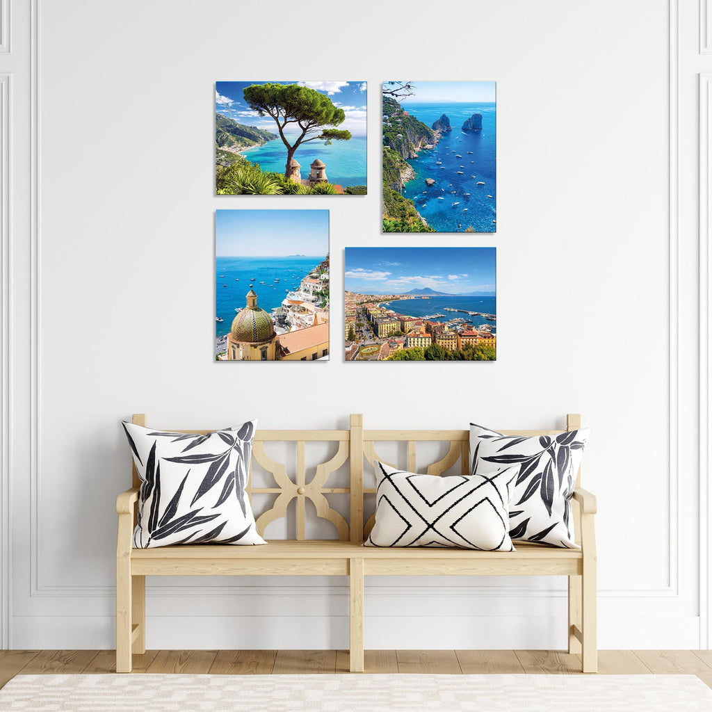Quadri Stampa su Tela con Telaio in Legno 4 pezzi Costiera Amalfitana, Ravello, Positano