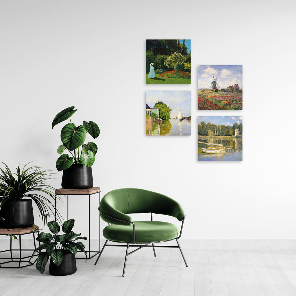 Quadri Stampa su Tela con Telaio in Legno 4 pezzi Claude Monet