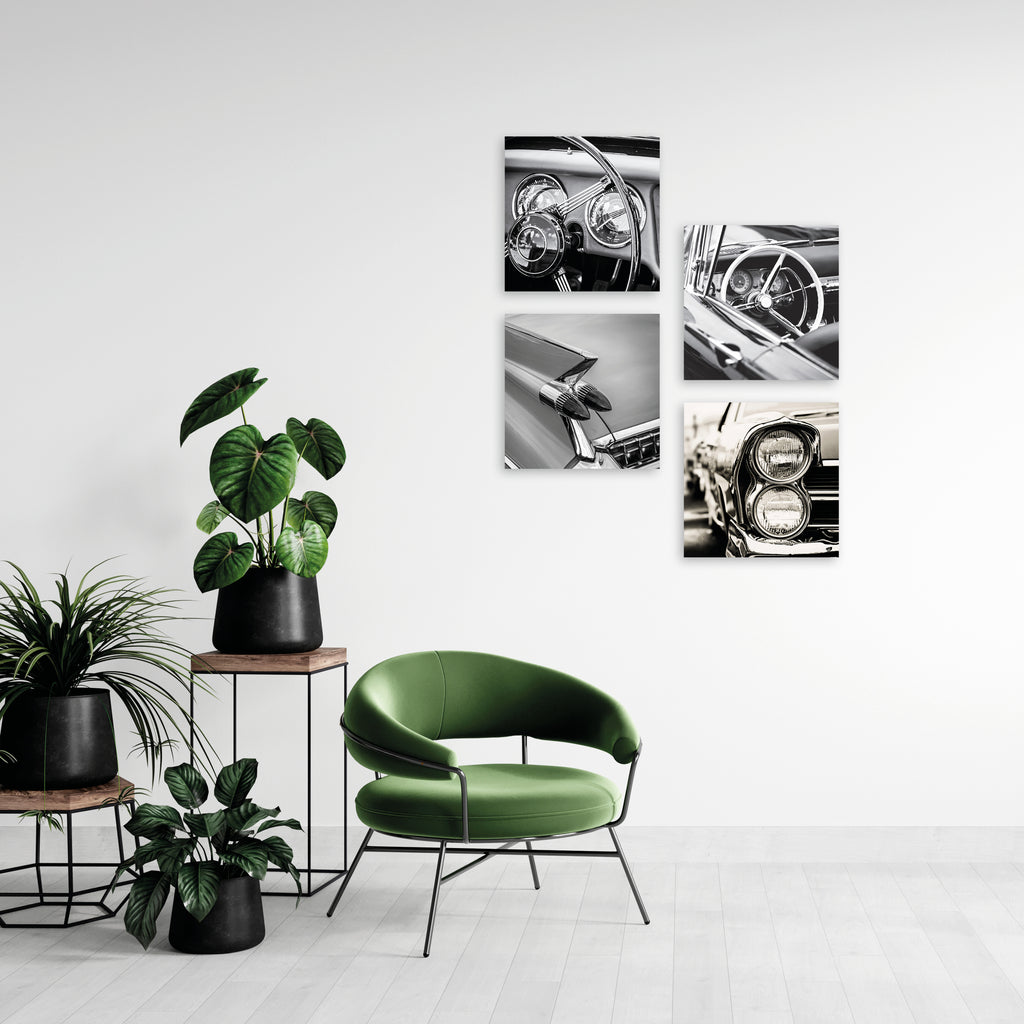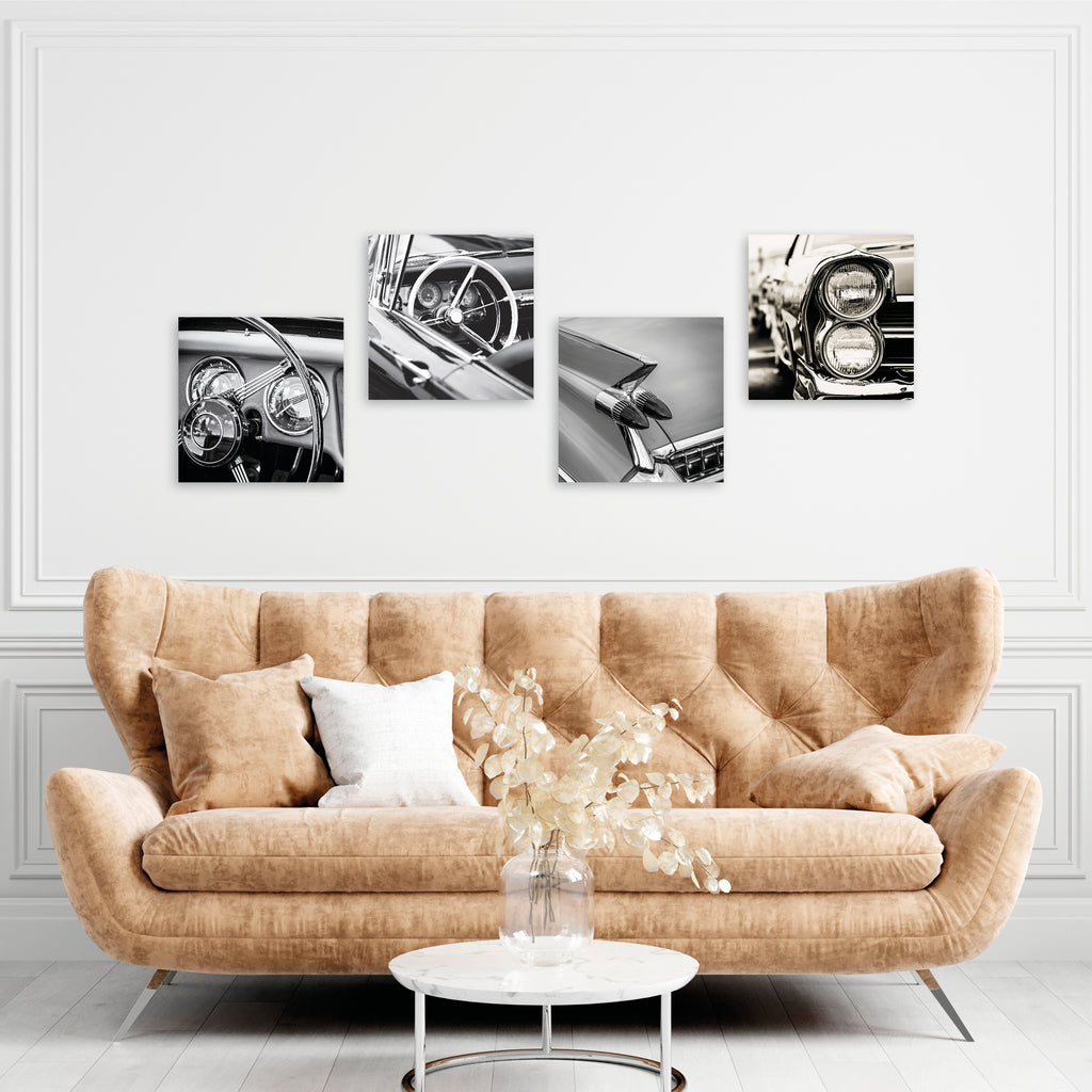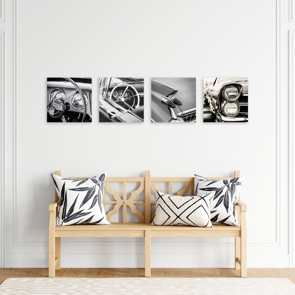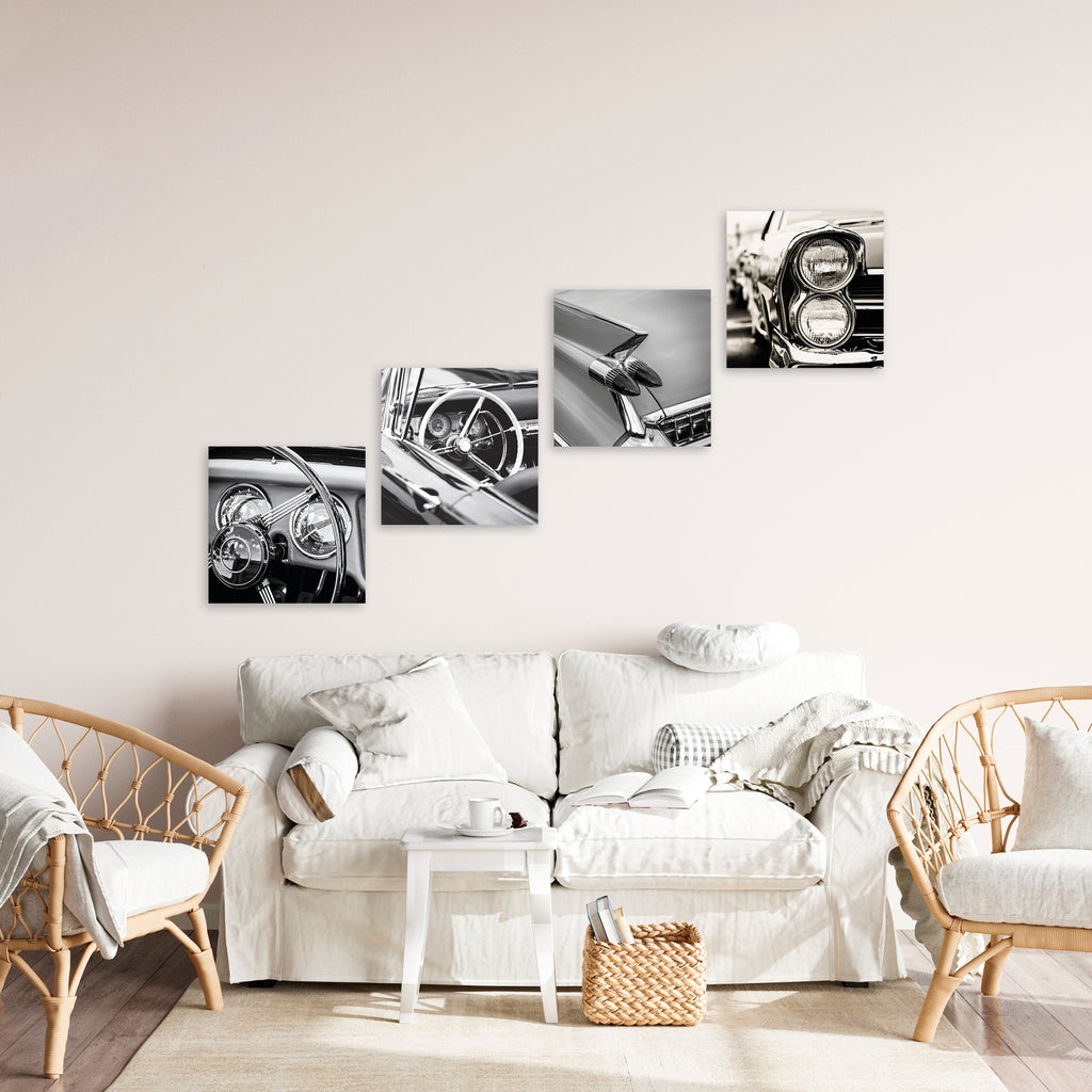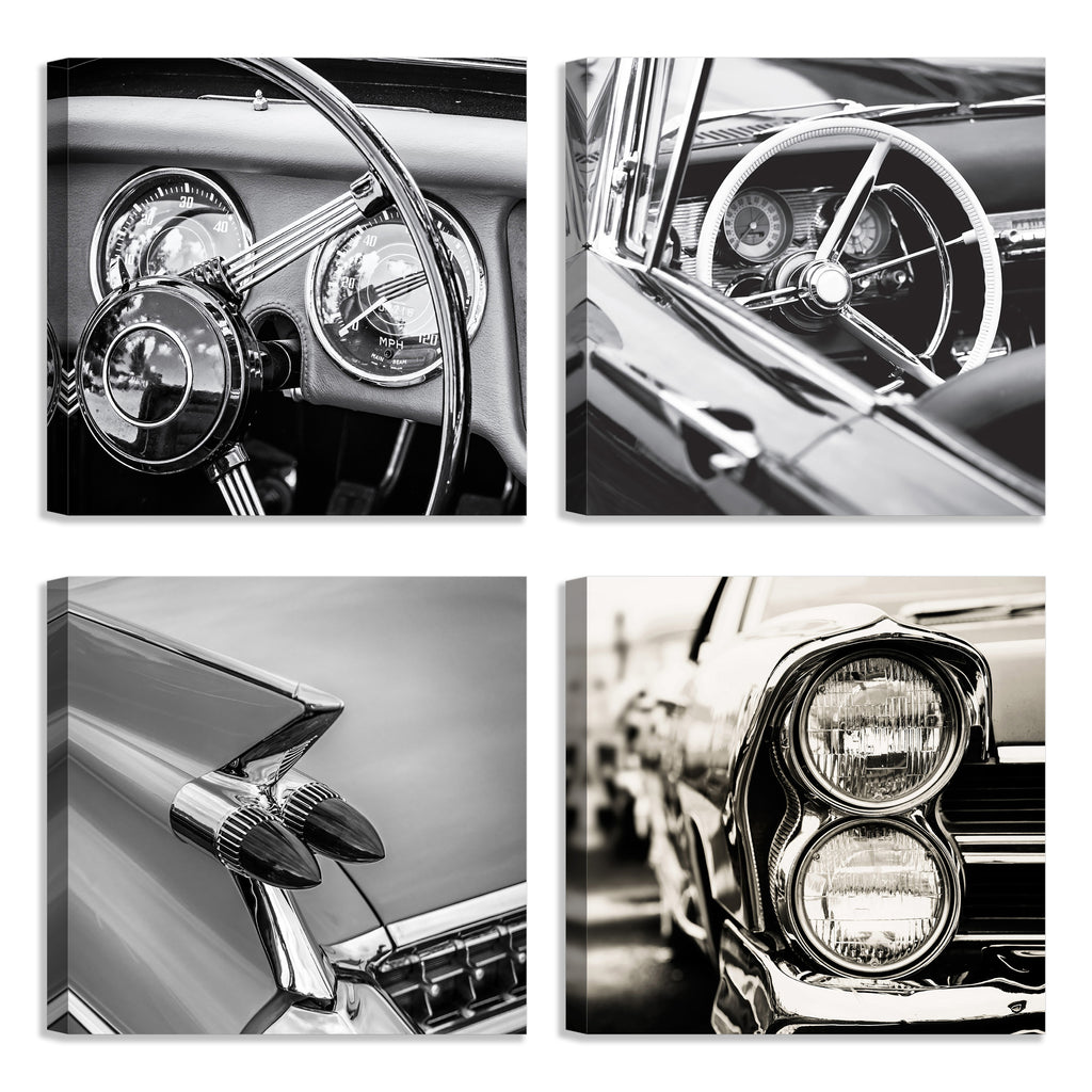 Quadri Stampa su Tela con Telaio in Legno 4 pezzi Auto vintage in bianco e nero