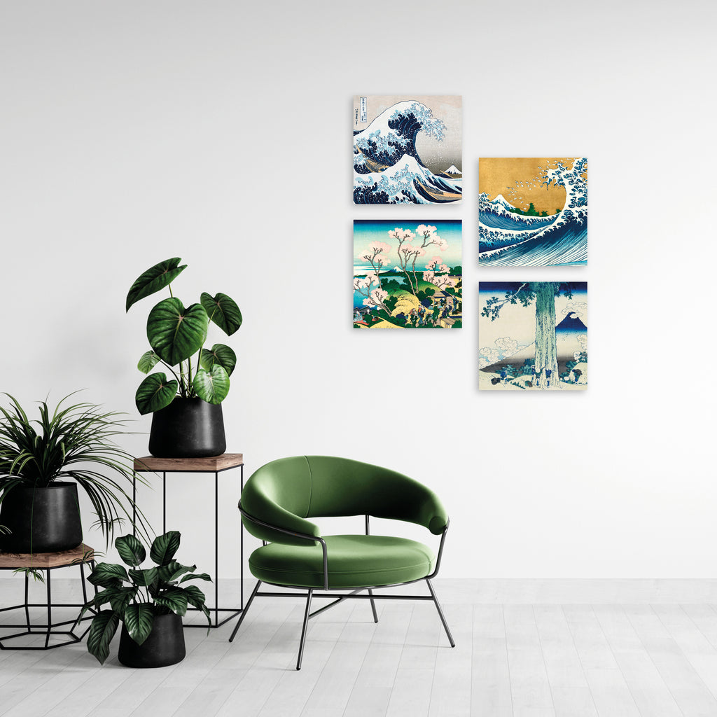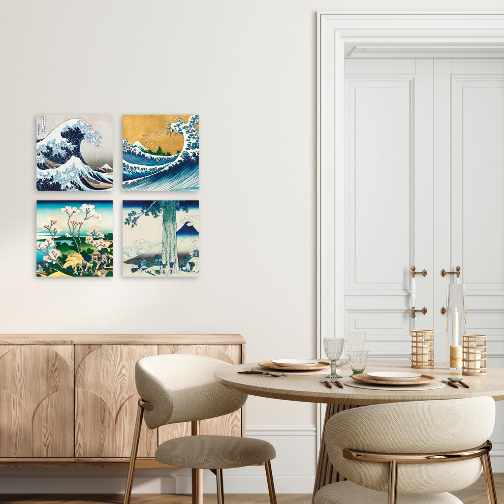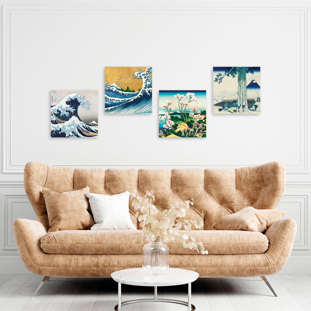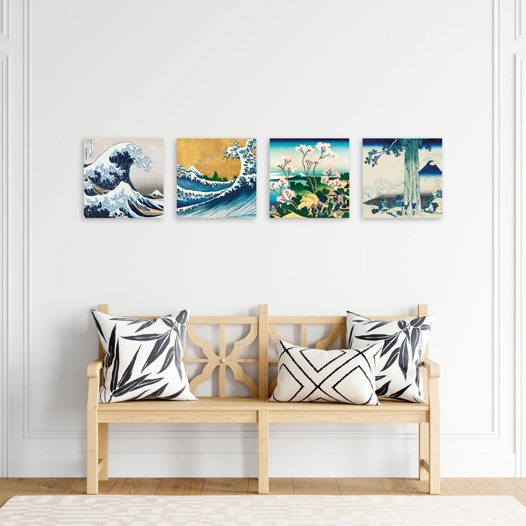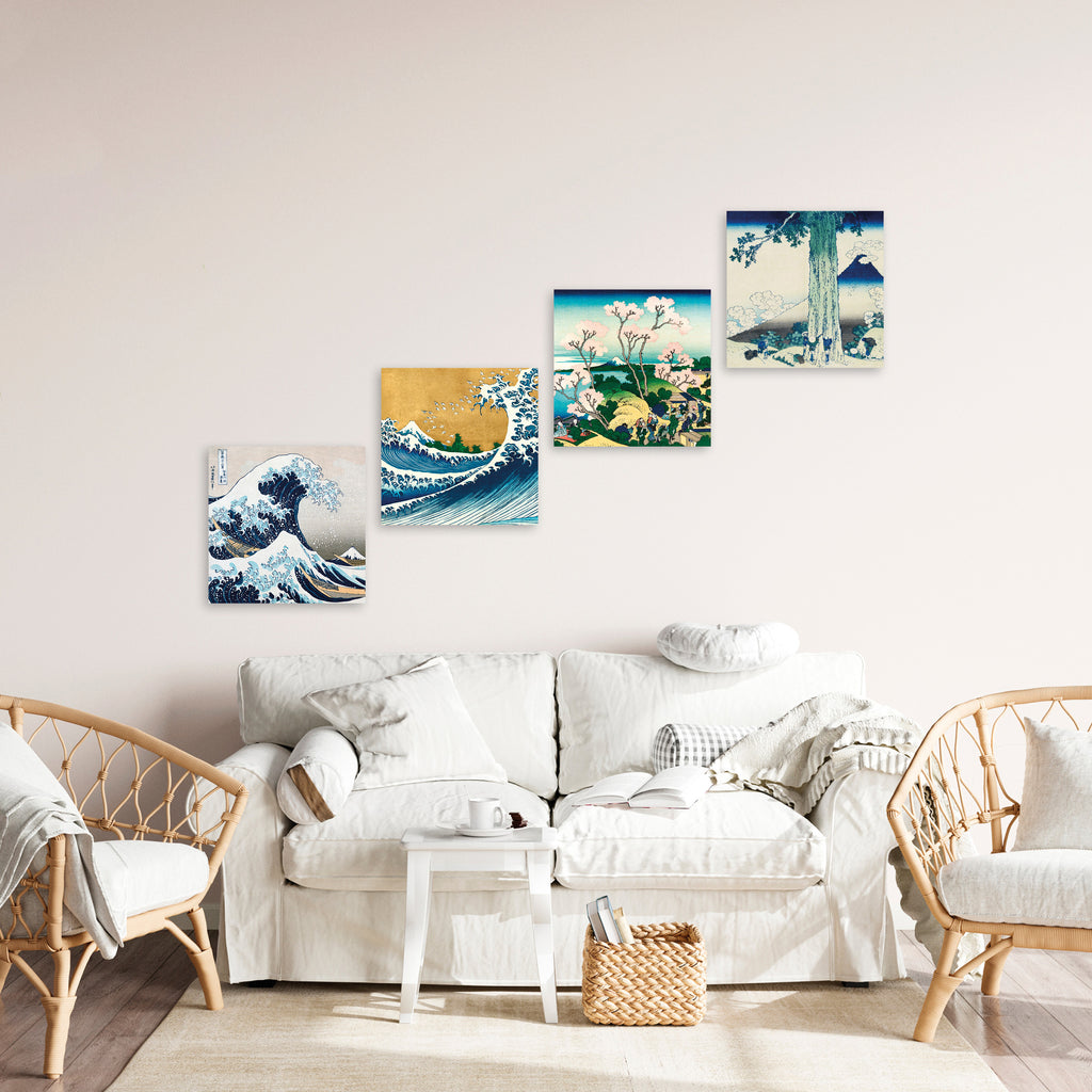 Quadri Stampa su Tela con Telaio in Legno 4 pezzi Hokusai